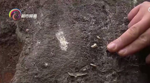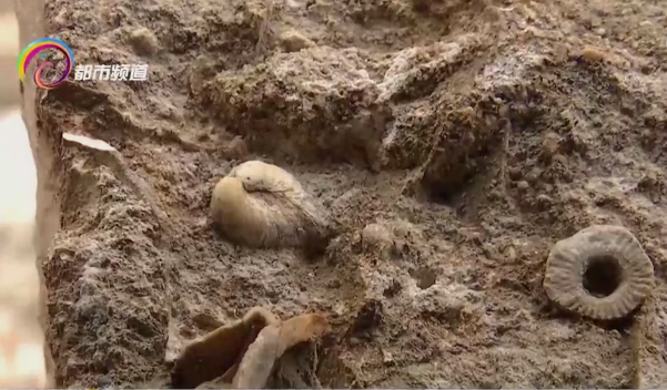 最近,昆明市民在机场高速收费站旁的一片小石山内,发现很多镶嵌着像铜钱图案的石头,疑似化石。