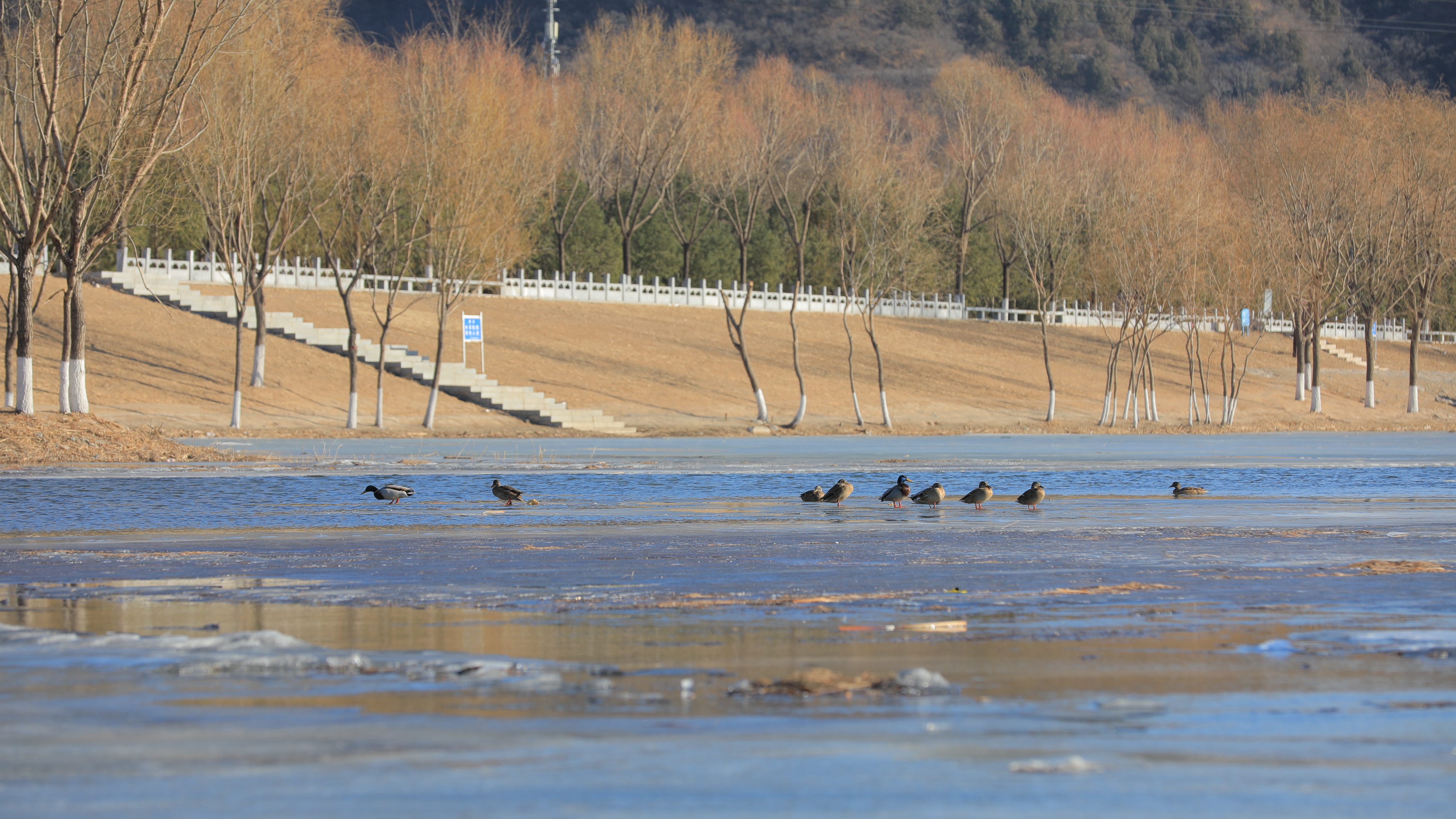 俗话说“春江水暖鸭先知”,野鸭们的到来似乎也是如此印证。数据统计,连日来,门头沟区白天气温均处于0摄氏度以上,不少冰面出现了明显化冻现象。
