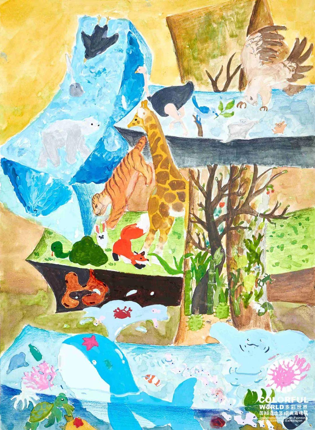 大家好,我是Katie,来自加拿大渥太华。我很开心可以参加“多彩世界”国际青少年绘画邀请展并得了二等奖。我觉得生物多样性就跟奥运会多样性一样重要。生物的多样性是全球的资产,是人类生存和发展的基础。所以人类需要保护自然,与自然和谐共生。