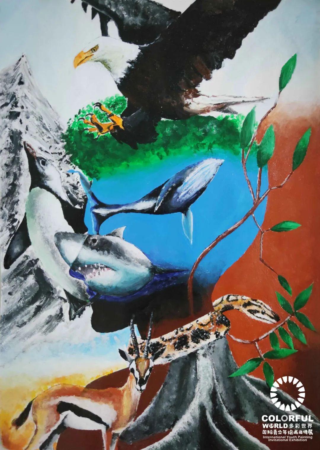 大家好! 我叫Ryan Wu,来自澳大利亚布里斯班。我非常高兴参加“多彩世界”国际青少年绘画邀请展,并获得二等奖。我的画旨在赞颂生物多样性的神奇以及世界的美丽与多彩。同时也想提醒人们濒危动物正面临困境。生物多样性是地球生物生存的根本,支撑了包括人类在内的地球上所有生命的可持续发展。在我看来,自然世界令人振奋、让人赏心悦目,同时它也是万物之源,它让世界变得有意义。让我们一起保护生物多样性,让世界变得多彩!谢谢大家!