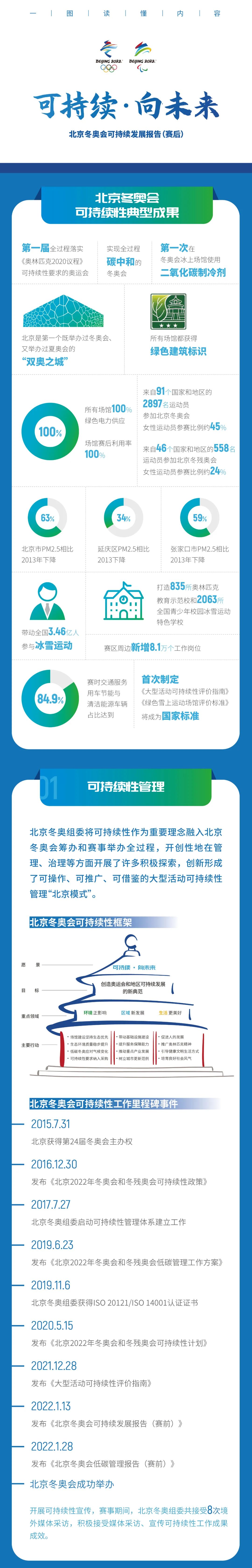 2月1日下午,北京市人民政府新闻办公室组织召开纪念北京2022年冬奥会成功举办一周年系列活动新闻发布会,发布《北京2022年冬奥会和冬残奥会赛后可持续发展报告》,小布带您一图读懂↓↓↓