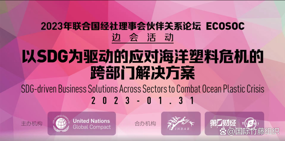 此次边会由联合国全球契约组织中国联络办公室主办,国际竹藤组织、第一财经合办,旨在围绕“应对海洋塑料危机,加速2030可持续发展议程的实现”,分享联合国机构、跨部门企业和非政府组织在循环经济理念、全价值链理念指导下,通过伙伴关系和创新平台开展的务实集体行动。