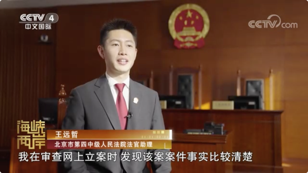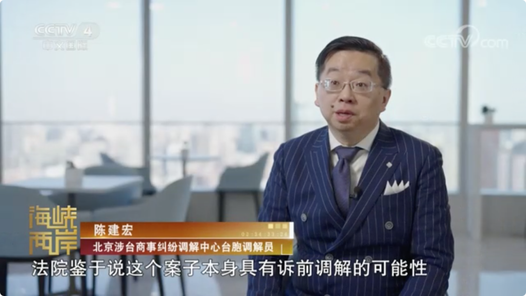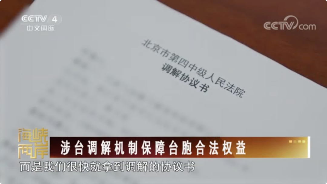 随着两岸经济交流的日益密切,涉台商事纠纷调解工作逐渐成为了高效、平稳、和谐解决涉台商事纠纷的重要手段。北京四中院在近期办理的一起涉台案件中,借助“总对总”诉调对接机制,与北京市人民政府台湾事务办公室、北京涉台商事纠纷调解中心等单位通力合作,实现了成功调解,并第一时间完成司法确认。中央电视台中文国际频道CCTV-4《海峡两岸》栏目对四中院涉台调解工作成果进行了报道,该案承办团队成员王远哲接受了采访。