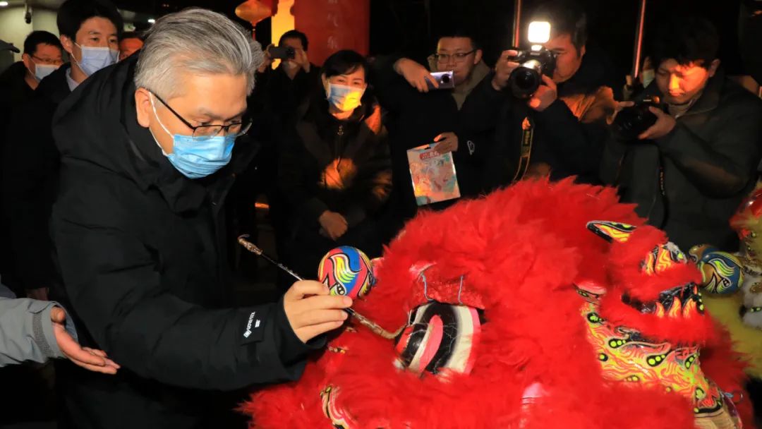2月3日晚,门头沟区委副书记、区长喻华锋到中关村(京西)人工智能科技园•智能文创园参加门头沟区2023年元宵节游园会活动,在现场为舞狮点睛,并沿途参观了游园会五大分区,现场体验了非遗文创、AI科技互动等项目。