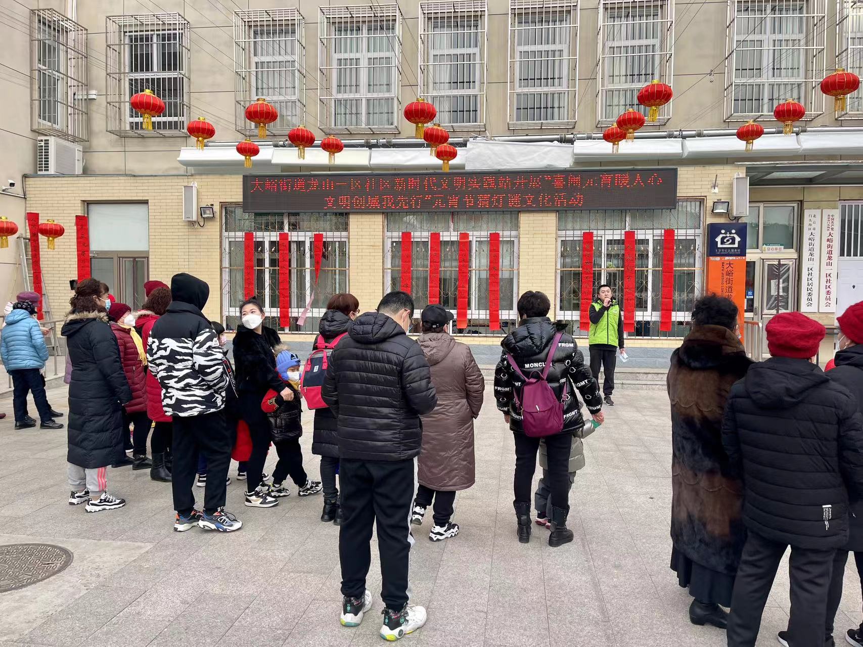 2月3日上午,门头沟区大峪街道龙山一区社区开展“喜闹元宵暖人心、文明创城我先行”猜灯谜活动。20条“创城”主题灯谜吸引了众多社区居民前来竞猜,活动现场一片热闹景象。
