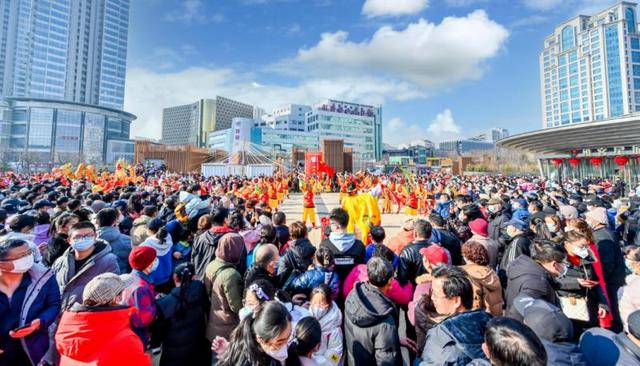 精彩的传统文化表演后,来自全区各街道的20余支民俗队伍齐聚广场,舞龙、杂耍、空竹、锣鼓、秧歌、民族舞……各队伍竞相展示精彩技艺,演员们畅快淋漓舞动新春韵律、放飞时代梦想,活动现场锣鼓喧天、载歌载舞,市民们津津有味品评文化佳肴、表达节日祝福,共度喜乐元宵会。