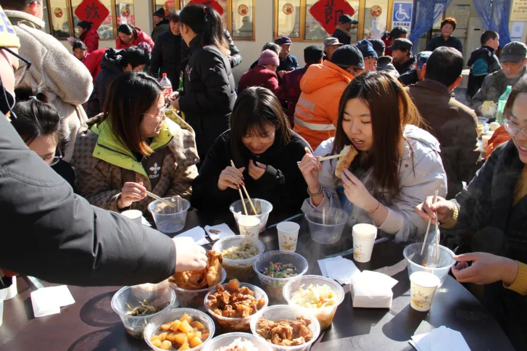 大家品尝着美食,一起祈盼新的一年美满、顺利!