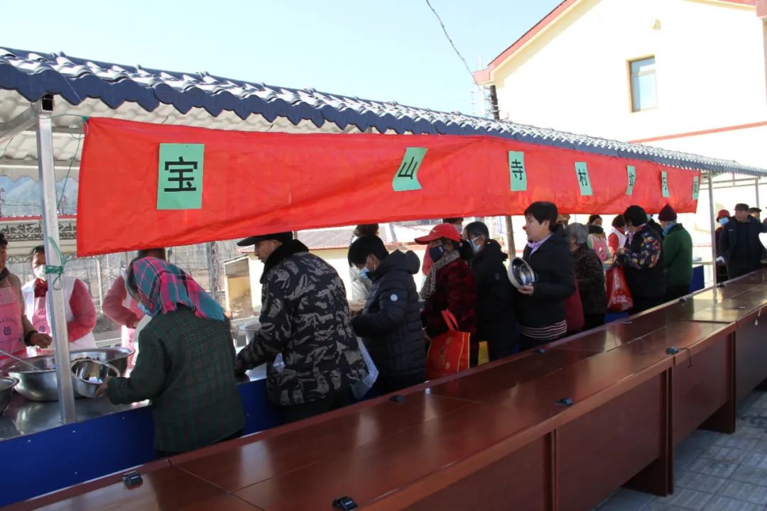 伴随着阵阵锣鼓声,宝山镇下坊村、宝山寺村、养渔池村、牛圈子村、江村的“敛巧饭”特色民俗活动拉开帷幕,现场人声鼎沸、热闹非凡~