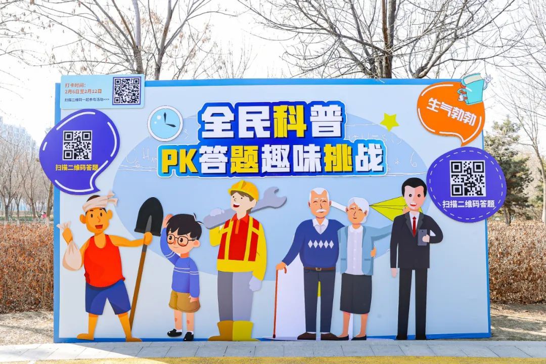 现场,不少市民跟随科普志愿者全程打卡参与了活动,“这道题是选这个吗?”“答对了!”每到一个打卡点,大家都互相探讨,沉浸在答题闯关的乐趣中。记者了解到,马坡城市森林公园共设置了10个打卡点,每个打卡点的展板上均设有答题二维码,只需扫一扫,就可以进行科普知识答题。题目结合党的二十大精神、科技发展、京津冀公民科学素质大赛、创建森林城市等热点设置。
