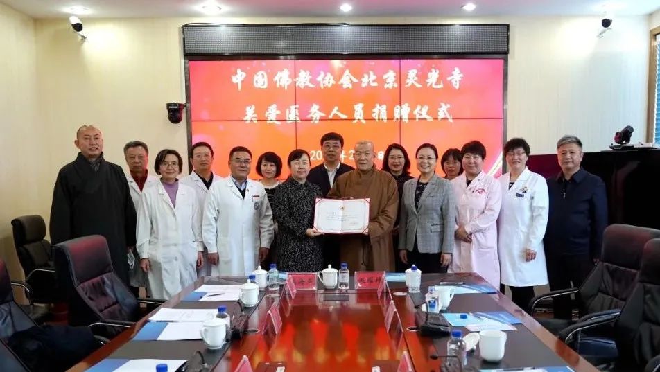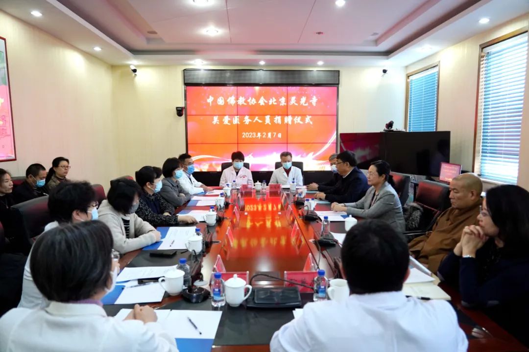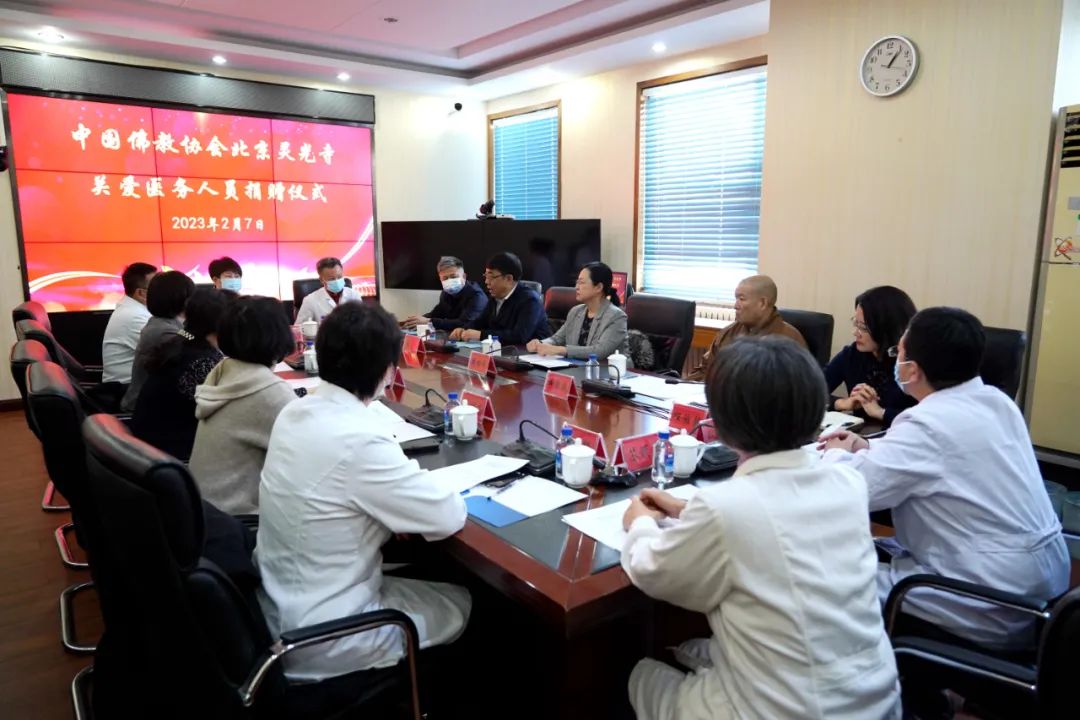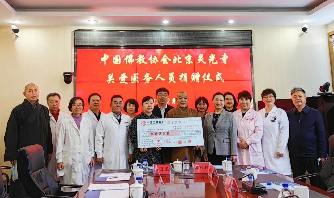2月7日,中国佛教协会北京灵光寺为表达对医务人员的关心关爱,向石景山区卫生健康委捐赠50万元爱心款,以此向医务人员三年抗疫工作中无私奉献、守护人民健康精神的敬意和感谢。