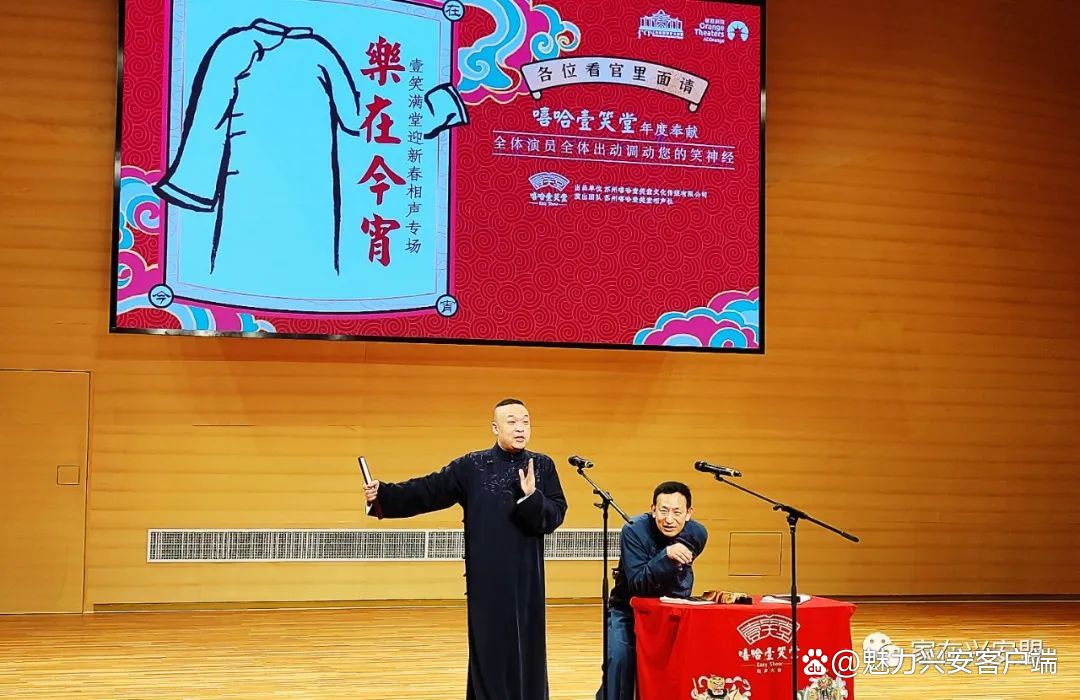 舞台上,来自苏州嘻哈壹笑堂的相声演员们身穿长褂说着段子,一唱一和之间抖出一个个“包袱”,惹得台下观众捧腹大笑。表演的《韩信算卦》《恭喜发财》《黄梅戏》一系列节目包含戏剧、快板等内容,为观众献上了一场传统文化大餐。“孩子特别喜欢看相声,没想到今天在家门口就看到相声演出。希望乌兰牧骑宫聚橙剧院多多承办此类演出,让曲艺艺术真正走进老百姓的业余生活。”刚刚拿到演员签名的观众牛海娟激动地说。