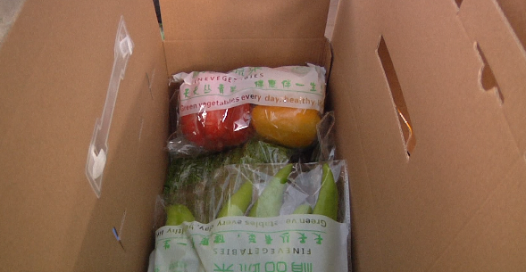 在西田各庄镇卸甲山村,蔬菜种植园区村民忙着打包果蔬礼盒,挑菜、称重、打包、装盒一气呵成。