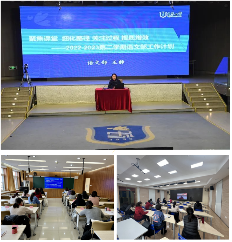 语文部召开题为《聚焦课堂 细化路径 关注过程 提质增效》的计划解读会。新学期聚焦课堂质量,以新课标为引领,以系统思维为指导,整体设计课上教学和课后服务、课堂学习与课后作业;整合设计课程内容和课后活动,打通学习场域,综合设计拓展型学习任务群,培育学生综合素养,汇聚团队智慧与力量,综合提升学科育人力。