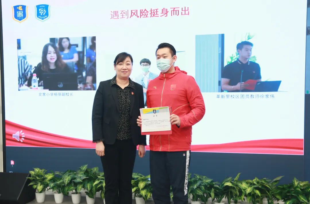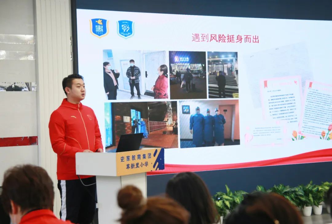 大会上,由史家教育集团党委委员、革新里小学党支部副书记(主持工作)姚辉进行师德师风宣讲。姚辉副书记指出,师德高尚的教师应具备四个特点,即遇到机遇勇于挑战;遇到困难迎难而上;遇到挫折乐观面对;遇到危险挺身而出。并逐一进行了解读。现场还为疫情期间,积极参与社区志愿服务的干部代表杨丽副校长、党员代表魏嘉晖老师、团员徐家伟老师颁发志愿服务证书,并代表全体教师向他们表示敬意。