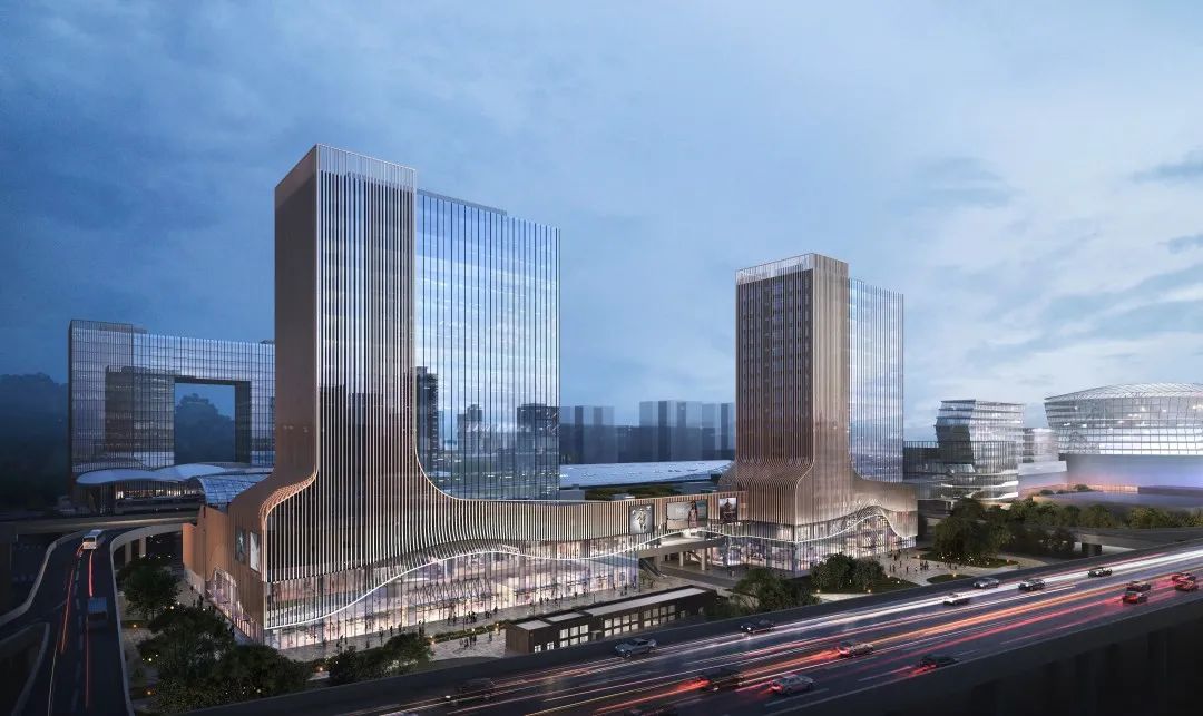 枢纽南区已于2021年9月封顶,目前正在进行二次结构和机电安装施工,已完成总工程量的80%。