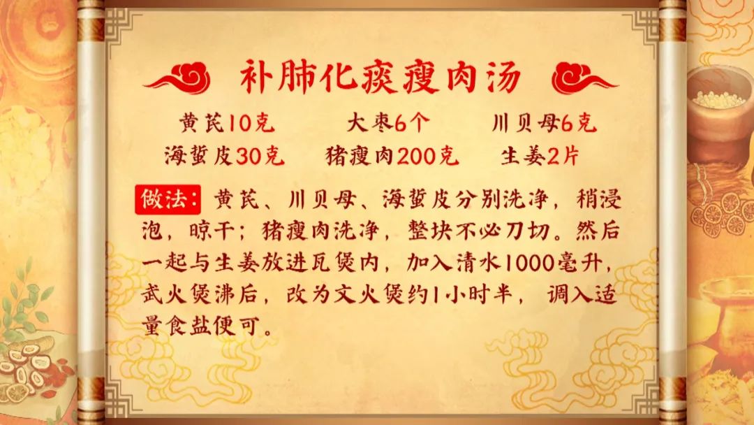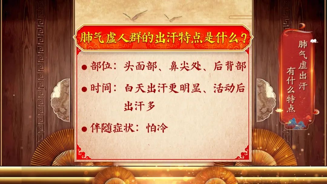 童主任告诉我们,今年冬春交替第一个需要注意的健康危机就是肺气虚,肺气虚是每年的这个时候最常见的健康危机之一,而今年更是如此。如果肺气虚的情况不及时缓解,很容易加重原有的基础疾病,如:呼吸系统疾病、心脑血管疾病等,血压和血糖也很容易出现波动、更难控制。除了常见的咳嗽、咳痰、呼吸急促之外,肺气虚有一种临床上很常见,但容易被忽视的症状,就是出汗,童主任现场给大家讲解了肺气虚的出汗有什么样的特点。同时还给大家带来适合在家食用的补气润肺的药膳,里面到底有什么呢?除此之外,同样来自中国中医科学院西苑医院综合内科的谢护士长,还教给大家一个科室自创的养生操——益乐长寿操,里面护心肺的小动作,到底怎么做呢?