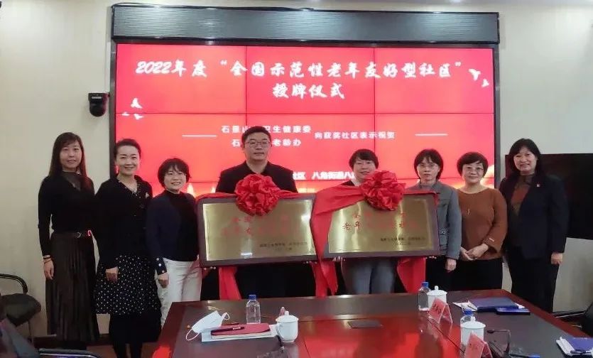 日前,石景山举行“全国示范性老年友好型社区”授牌仪式,为获得称号的八角街道八角中里社区、八角南路社区颁发了“2022年全国示范性老年友好型社区”荣誉牌匾。