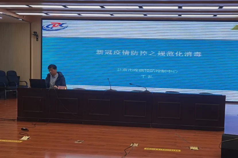 培训邀请北京市疾病预防控制中心消毒所副所长于礼、副主任医师张莉授课。会上,张莉介绍了全国及北京市新冠病毒及流感流行趋势,详细讲解了北京市疫情处置规范及标准,并对典型案例进行讲解分析。于礼重点讲解了疫情处置中消毒工作的性质和操作流程。门头沟区疾控中心工作人员对门头沟区疫情处置工作流程进行梳理与答疑。
