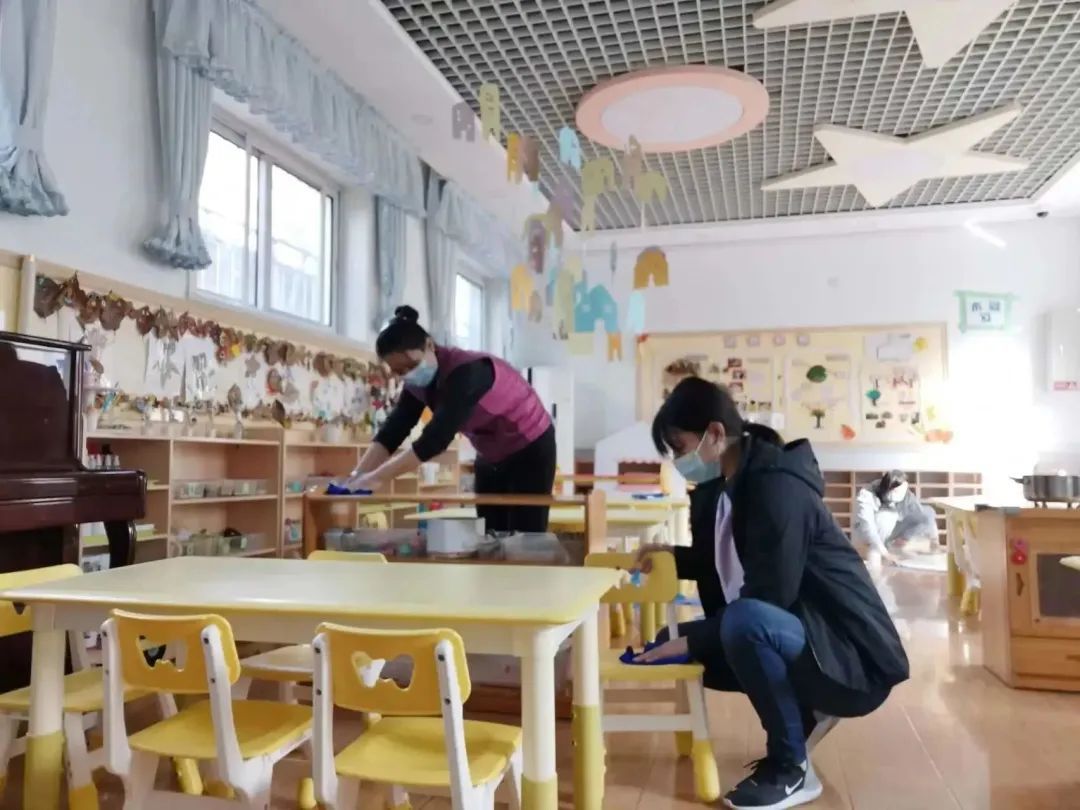 新学期来临之际,为了给孩子们营造一个温馨、舒适、干净整洁的学习生活环境,石景山区幼儿园全体教职工提前返回工作岗位,全力以赴做好开学前的一切准备工作。幼儿园各岗人员分工明确,对厨房、走廊、操场、班级活动区、桌椅、玩教具等进行了彻底地消毒与清洁,大家严格按照卫生消毒要求,全方位全覆盖无死角的进行了“搬家式”大扫除,所有行政人员都进行了冲刷和清洗,做到清洁、细致、到位,净亮园所环境。同时,为了给孩子们创设一个温馨舒适、充满童趣、寓教于乐的生活学习环境,充分发挥环境“隐性教育”的作用,教师群策群力,将幼儿园活动室、走廊、大门口等进行了环境布置,使幼儿园焕发出勃勃生机,为孩子们的开学创设了良好的氛围。