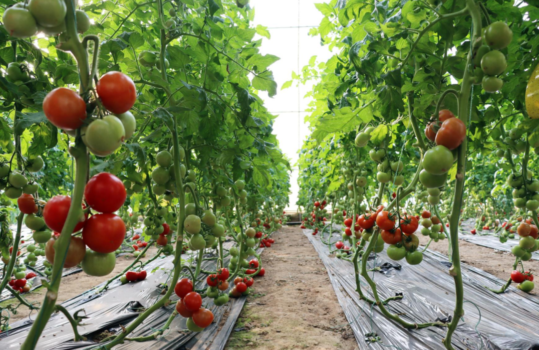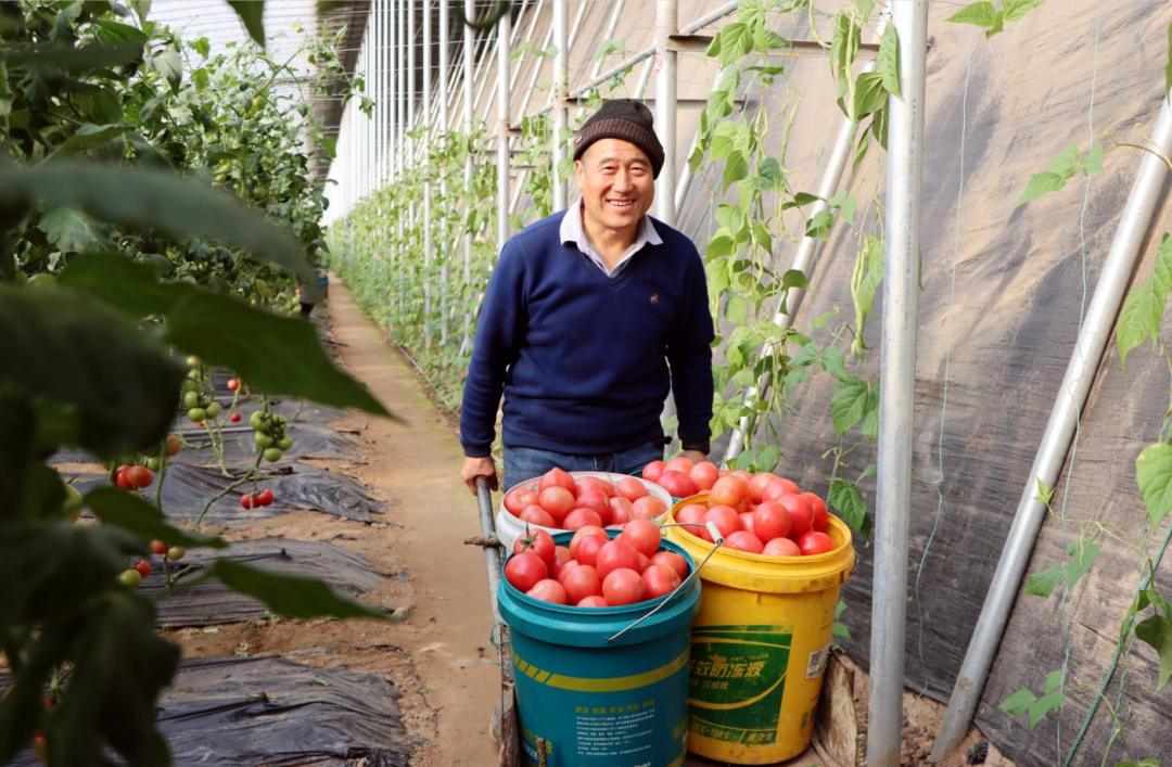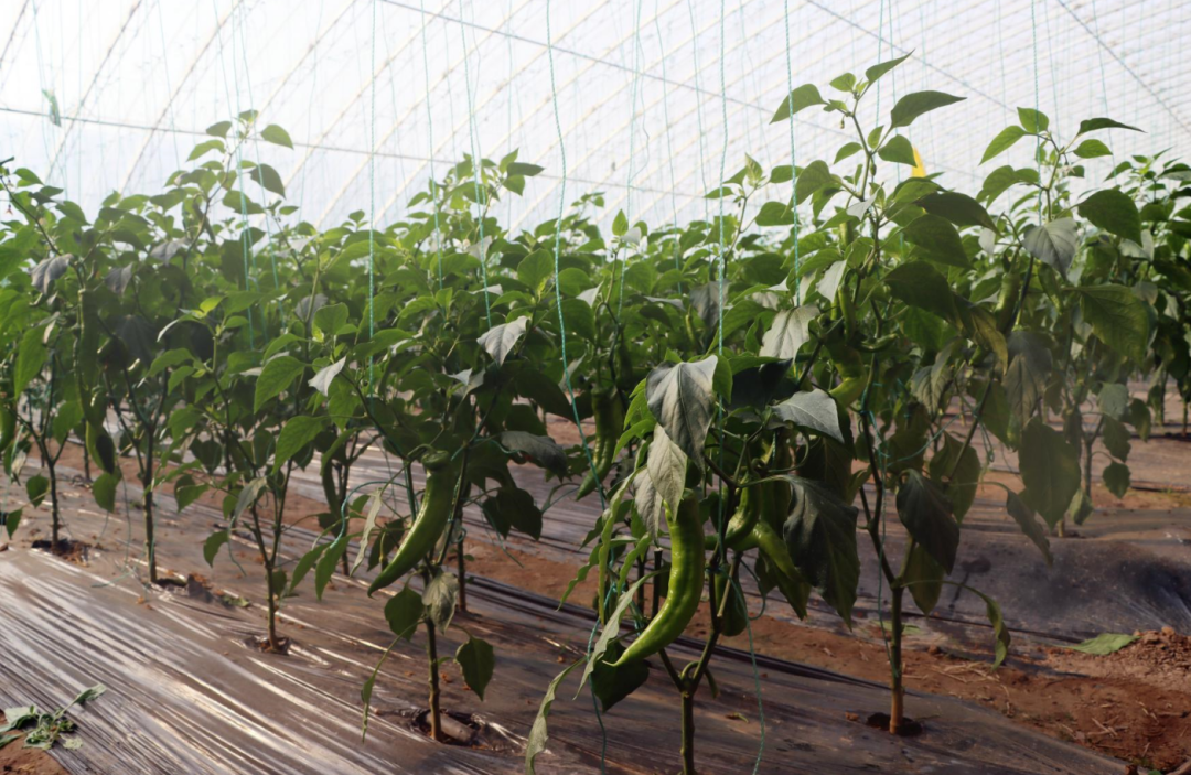 在另一个暖棚内,前期移栽的辣椒、番茄等蔬菜已进入采摘期。挺拔的辣椒秧上挂着累累果实,番茄的藤蔓努力向上攀爬,成熟后的番茄像一盏盏火红的灯笼。工人穿梭其间,忙着采摘果实,脸上洋溢着丰收的喜悦。