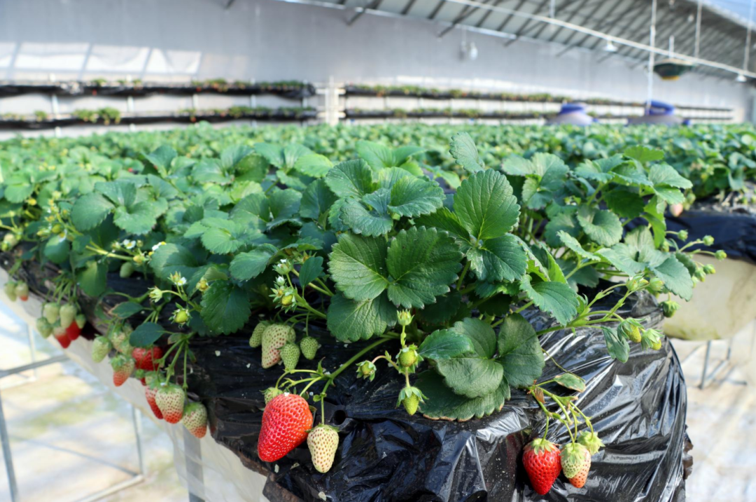 初春时节,室外虽然寒风习习,但在位于旧县镇的绿富隆现代农业产业园大棚内却温暖如春。阳光透过塑料棚膜,肆意地洒在草莓叶上,诱人的草莓羞红了脸,藏在叶间,待人采摘。据工作人员介绍,园区种植的草莓共有3个大棚,有“红颜”、“粉玉”、“白色恋人”和“黑珍珠”等,品种多样,口味上乘。