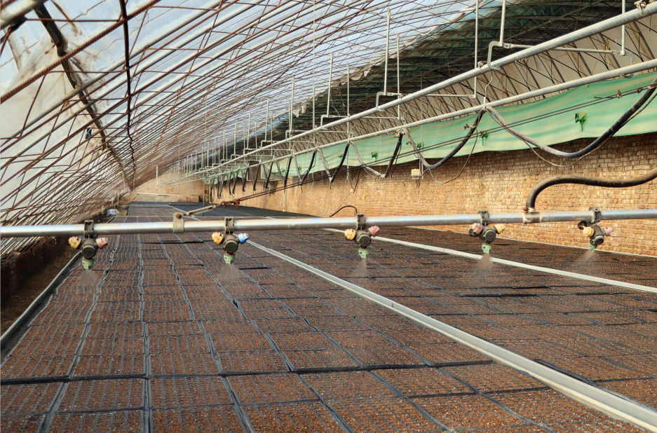北京茂源广发种植专业合作社采用穴盘育苗技术,以轻基质草炭、蛭石等做育苗基质,采用机械化精量播种,从基质的准备、复配、装填,种子处理、选择、播种、覆土,催芽和苗期管理等,实现全程可控、机械化、工厂化、自动化。园区内有6个育苗大棚,棚内育苗面积7.2亩,常年育苗量1000余万株。通过温室大棚培育出的本土蔬菜苗,采用集约化育苗技术,自动化水肥一体化灌溉技术,配有移动式育苗床,出苗率可达95%以上,使出苗率得到了有效提高。