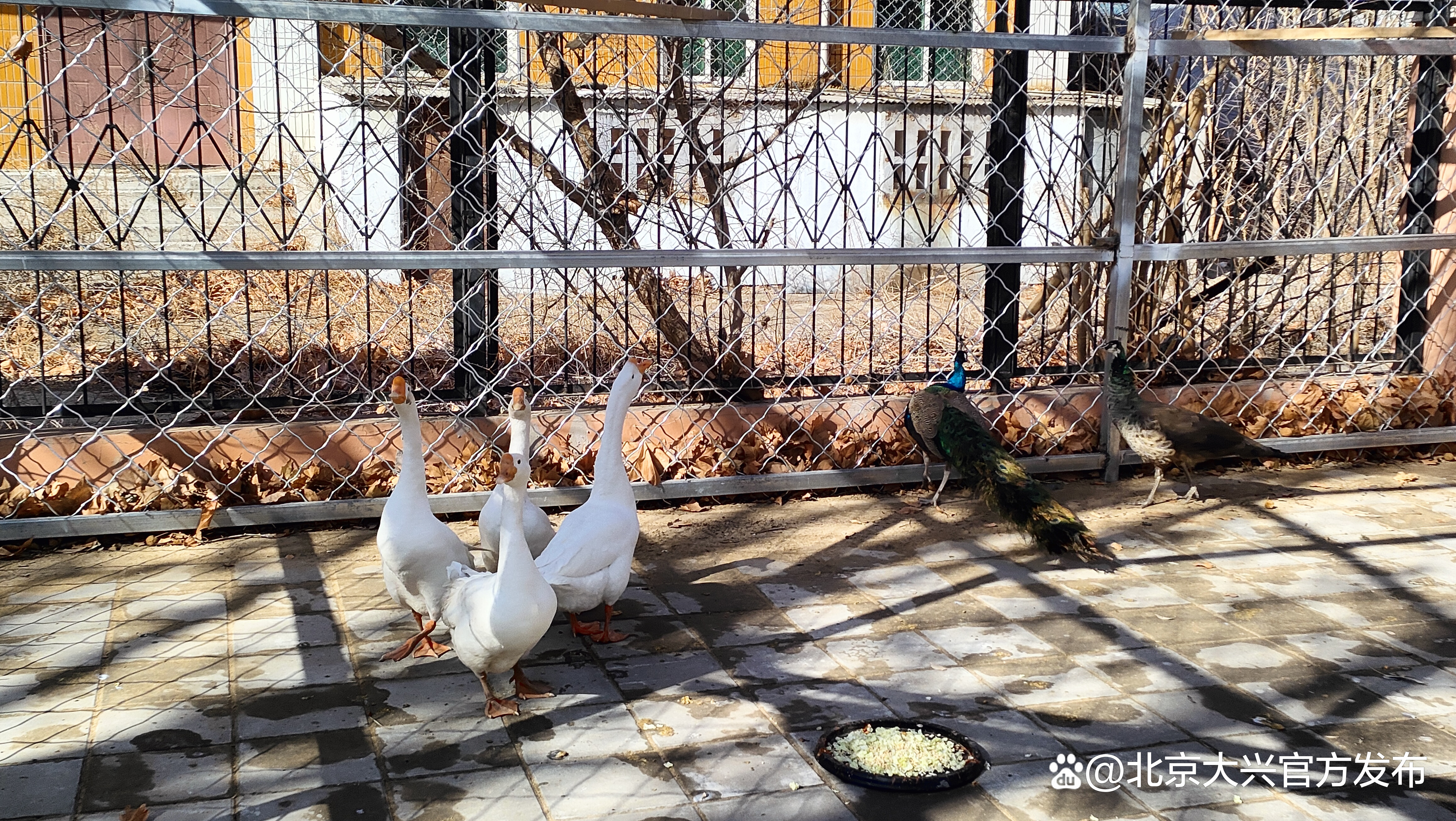 2月13日,开学第一天,位于大兴区榆垡镇的北京一零一中大兴分校迎来了一批特别的“新同学”,它们是一对蓝孔雀、两对白眼潜鸭和两对大白鹅。新来的“校宠”灵动可爱,立即吸引了学生们的围观。
