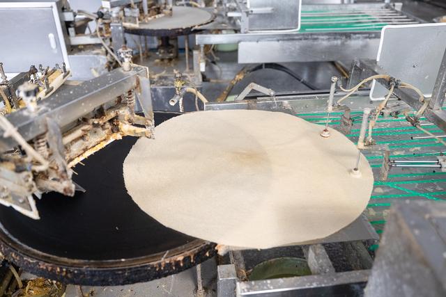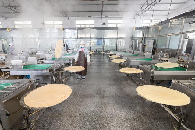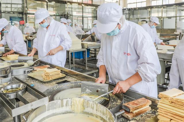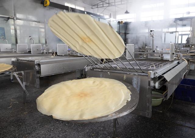 在山清水秀的济南南山,有一个百年传承的老字号野风酥煎饼。来到这里的生产车间,眼前并不是在热腾腾的炉子前“急手而左旋”摊煎饼,而是近百台的自动煎饼机整齐摆开,如变魔术一般“吐糊成饼”,从上糊到成型仅用30秒,再用2秒就完成一张张煎饼的折叠。这里还有各种杂粮煎饼,枸杞、火龙果、大枣、玫瑰等现代人喜闻乐见的口味,有的煎饼还夹了花生、芝麻、核桃馅儿……
