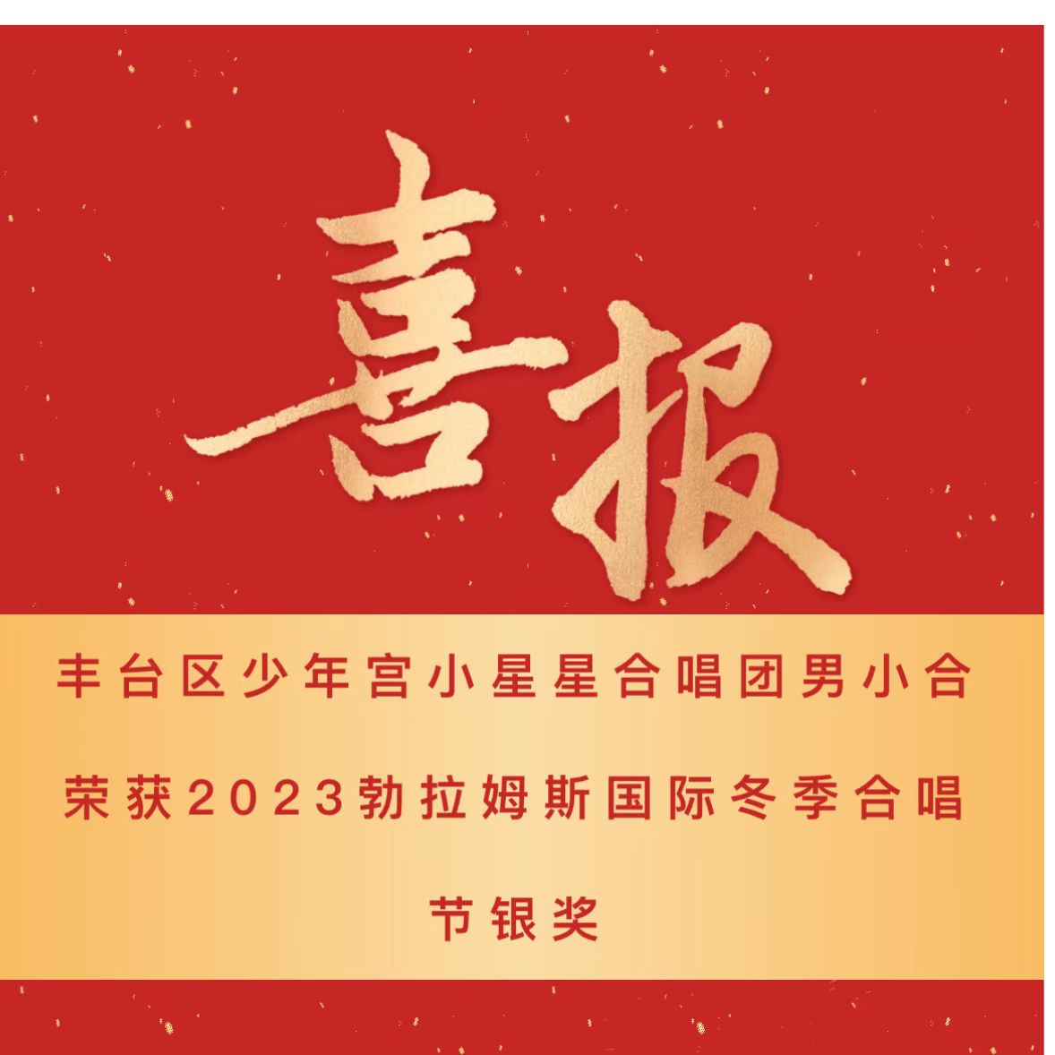 瑞兔迎新春,新年传佳音。2023新春佳节之际,丰台区少年宫小星星合唱团男小合荣获由奥地利米尔茨楚施拉格市政府、世界音乐艺术教育协会主办的2023勃拉姆斯国际冬季合唱节银奖!