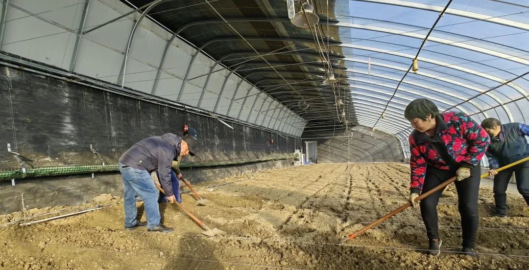 郞枣园农业大棚内,盛泰嘉禾农业科技发展有限公司总经理戴理正带领10余名工人穿梭于苗床间,开展施肥、犁地、起垄、疏通滴灌带等工作,为新一年增产增收打好基础。“孙河现有农田2800亩,由我们公司负责种植,2022年收获农作物850吨。今年春茬,黄瓜、西红柿等去年热销的蔬菜,种植量计划再提三成!”戴理说。