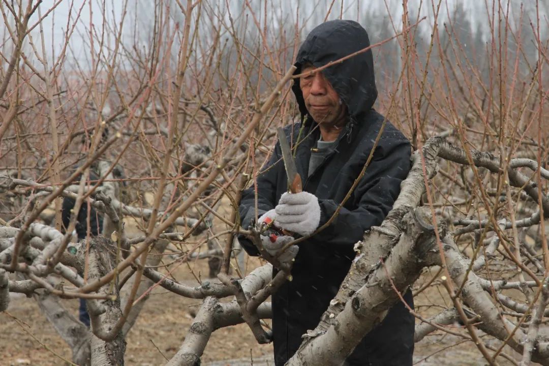郞枣园果园里,工人们正忙着剪枝。“要保证大枝稀、小枝密;外围枝稀,内膛枝密……”果园负责人刘利志一边剪枝,一边给工人们讲解修剪的注意事项。“剪枝是为了提高果树效益和行间采光,结出的果实质量更好、产量更高。”刘利志说,今年果园计划种植桃100亩、苹果树80亩、枣树260亩。在为期10天的剪枝工作结束后,将进行开沟施肥。