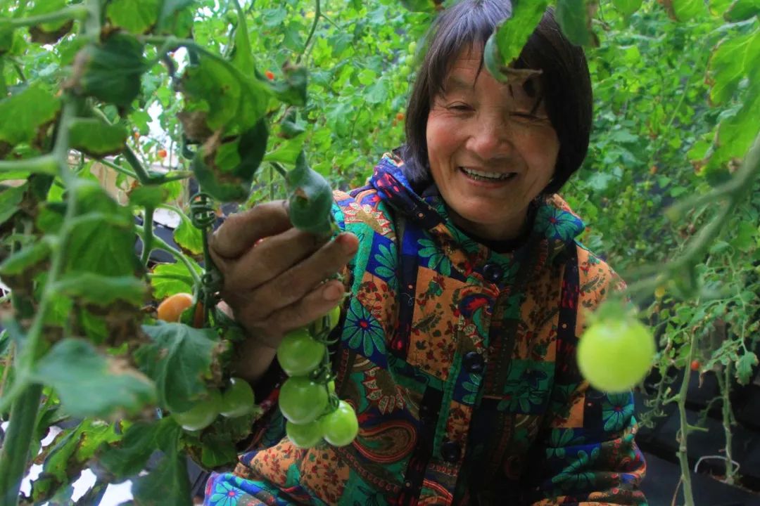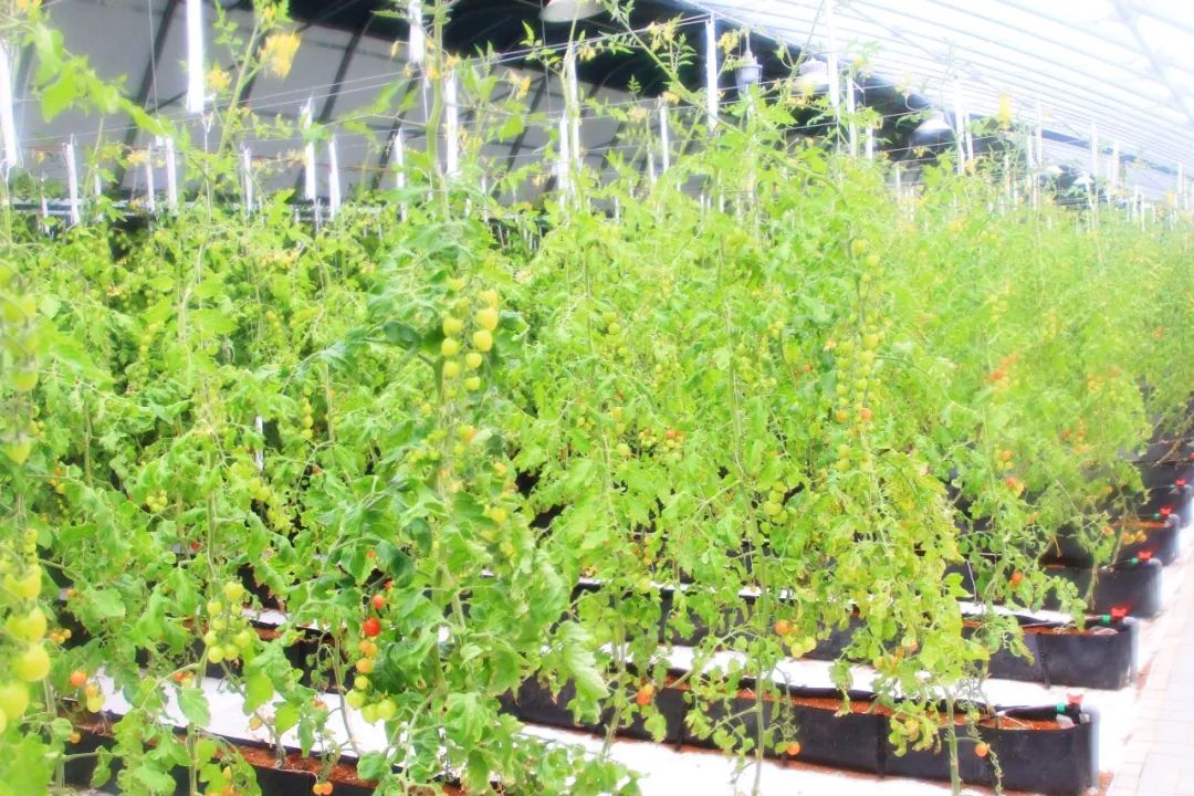 在一栋800多平方米、8米多高的温室里,去年秋茬定植的黄珍珠、千禧等品种的番茄已经成熟,一排排3米多高的植株上挂满了密密匝匝的果实。戴理介绍,郞枣园大棚去年9月完成定植20余亩,全年收获蔬果近40吨,实现了年底前量产的目标。大棚现有种植面积50余亩,今年计划种植蔬果14种。