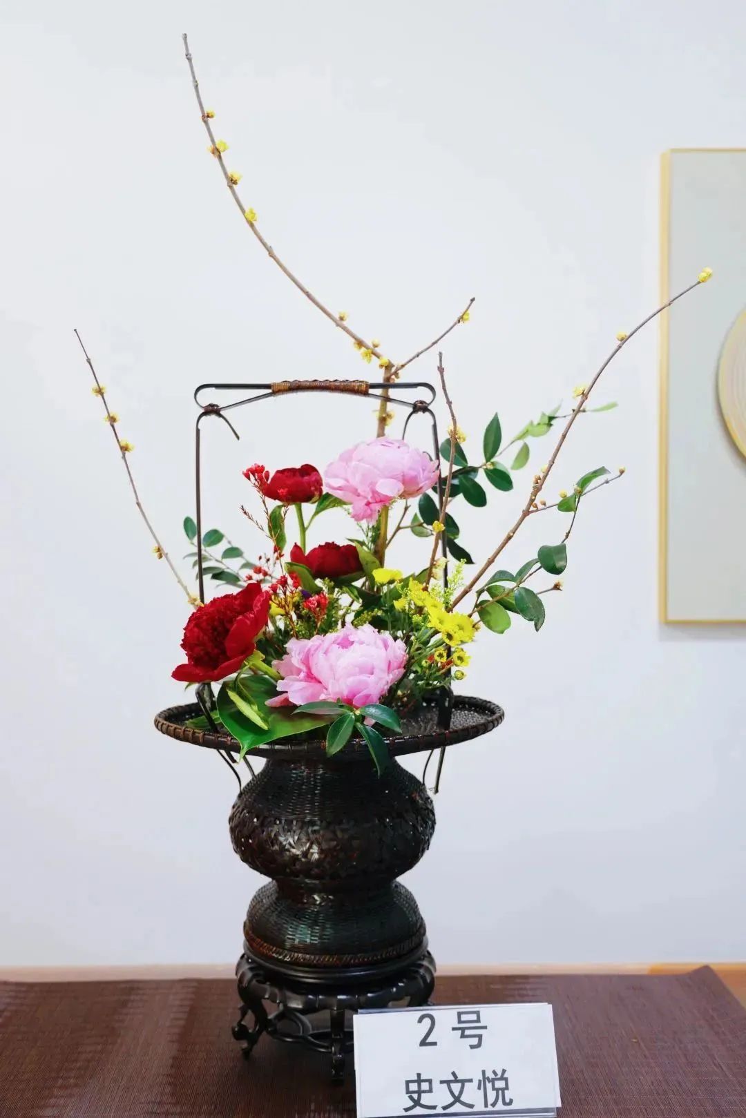 比赛中,史文悦老师充分发挥灵感与创意,按照插花艺术中的构图法则,高低错落,疏密有致,虚实呼应,匠心独运。以花为诗,奏上一曲冬季暖心曲。