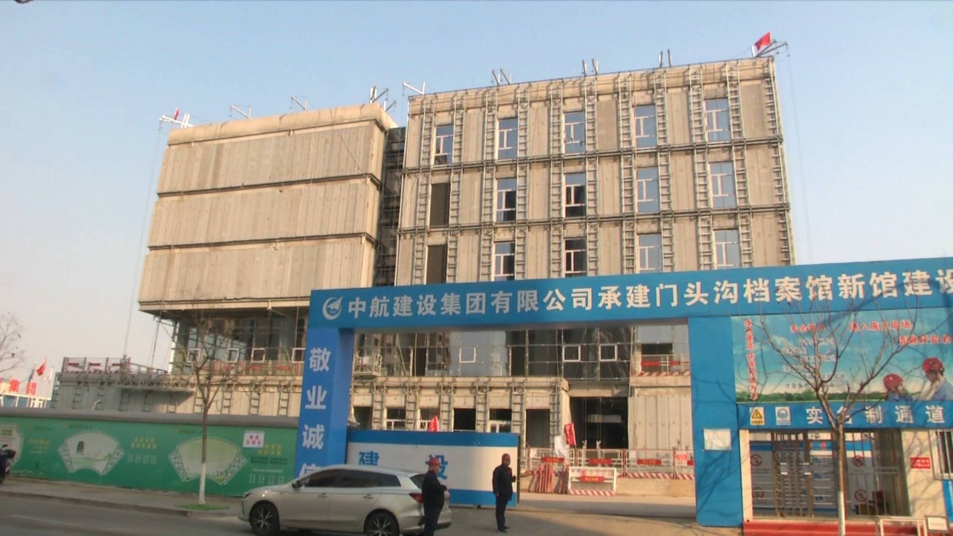 “一二,起!”下午两点半,门头沟区档案馆新馆建设项目施工工地内一派繁忙景象,工人们干劲十足,有的搬运材料,有的切割钢筋,还有的站在升降机上打孔,切割机声、电钻声、捶打声此起彼伏。据施工项目负责人介绍,工程目前已完成地下和地上的主体结构建设,正在实施后续装修和市政工程。