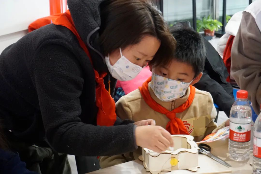 与古代制作花灯时所用的材料不同,现代版的花灯用印有美观图案的木板做外皮。“为什么古代用纸,现代用木板呢?”活动中同学们发出了疑问。“因为古代的花灯通常使用蜡烛做灯芯,用纸做外皮很容易点燃,不仅危险还不能长久保留。今天咱们做的花灯用灯泡和木板,可以作为工艺品在家里长期保存。”听了老师的解答,大家恍然大悟。