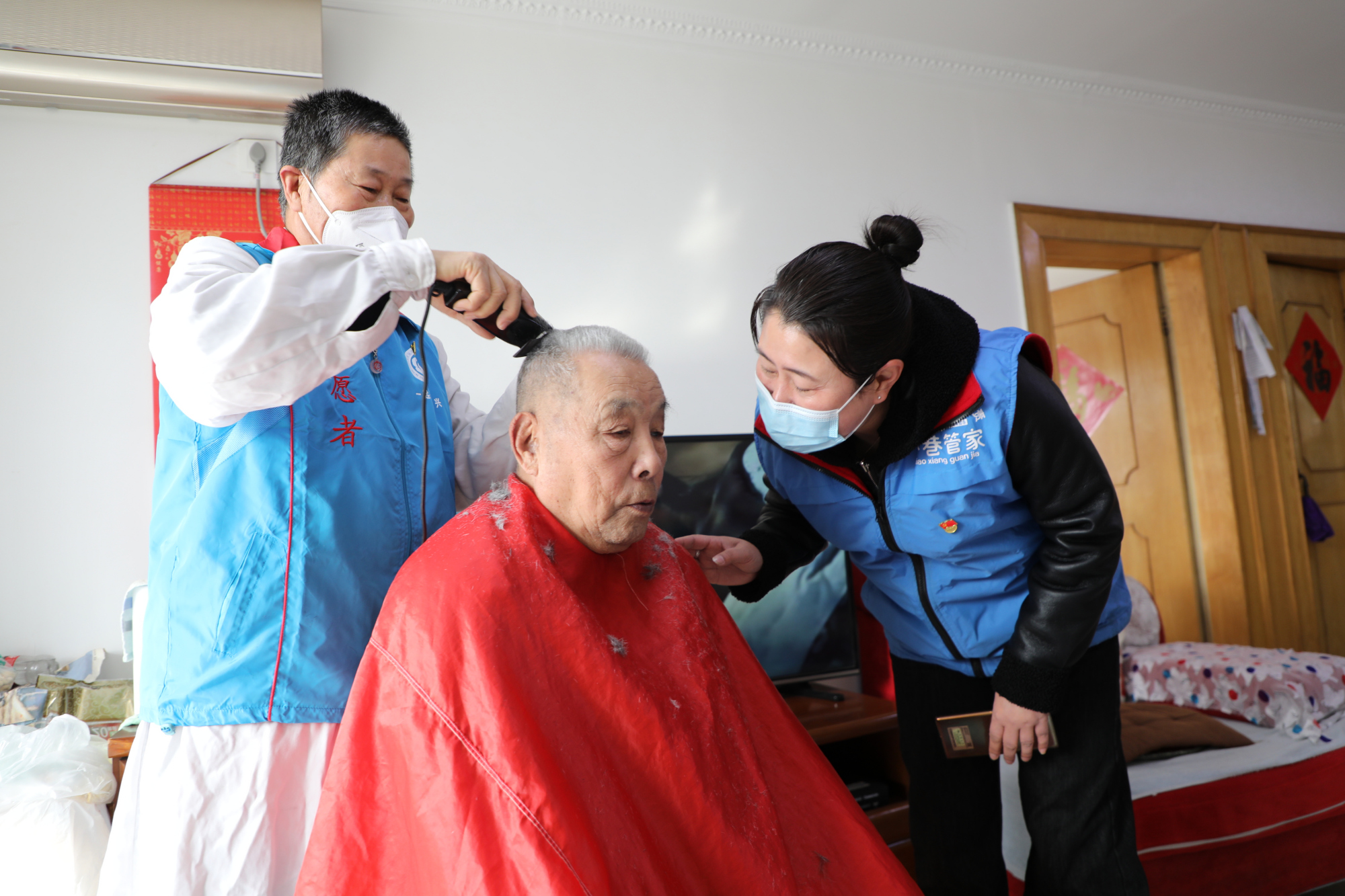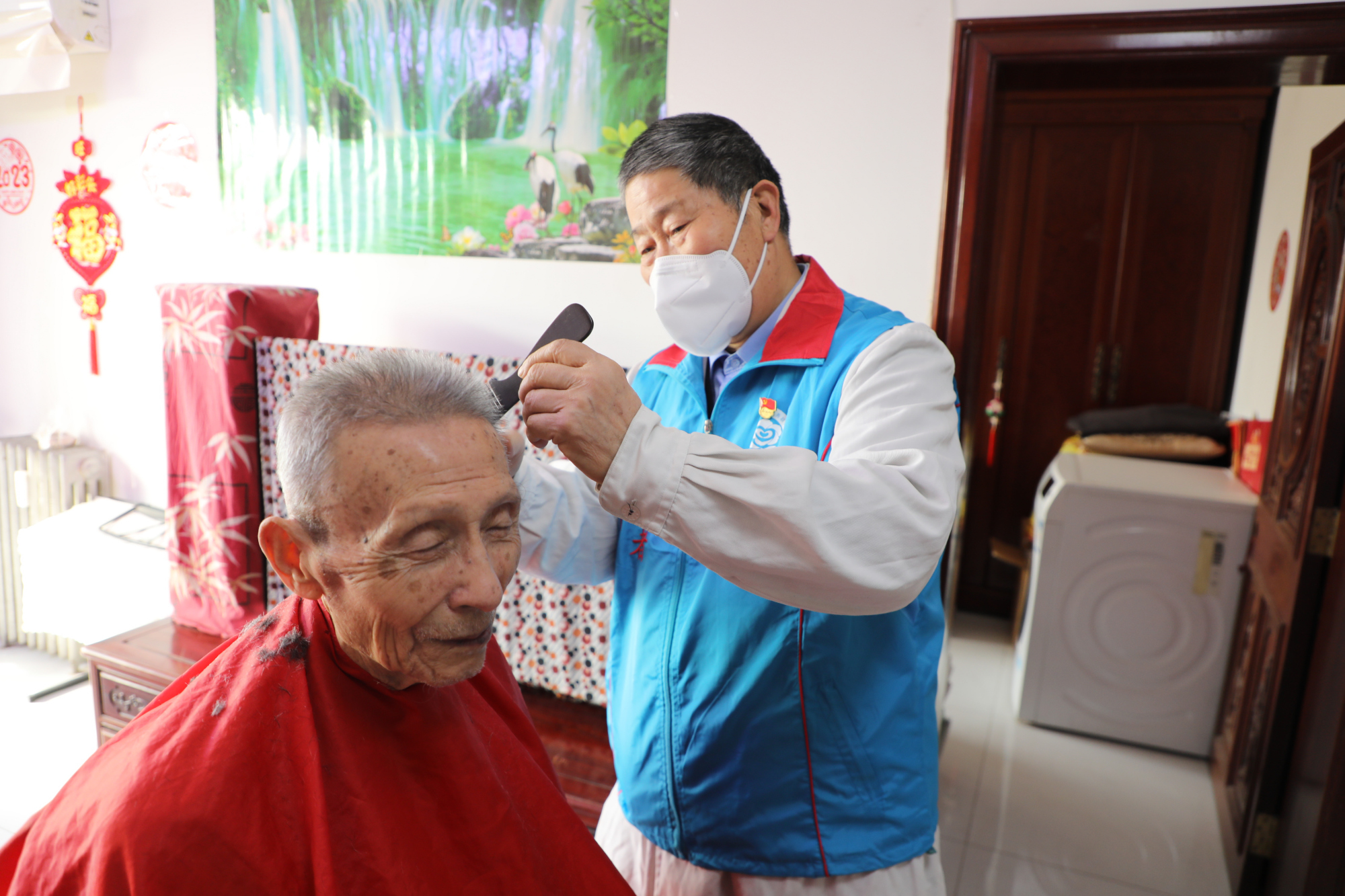 “今天是二月二,我来给您理发了。”上午十点,陈玉田敲开了89岁老人顾长和的家门,先是亲切地询问了老人的身体情况,随后利索地抖开围布,为老人理发。他一边与老人聊着家常,一边细心地修剪着头发,一会儿功夫就完成了。