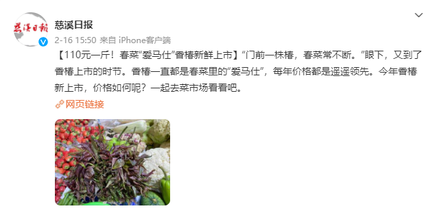 香椿的售价为110元一市斤
