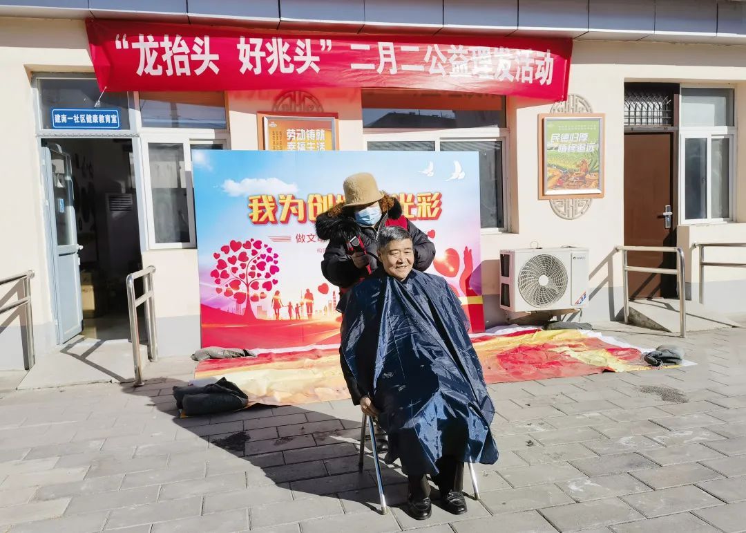 为了弘扬传统节日文化,让居民享受家门口的服务,胜利街道建南一社区举办“龙抬头,好兆头”二月二公益理发活动。