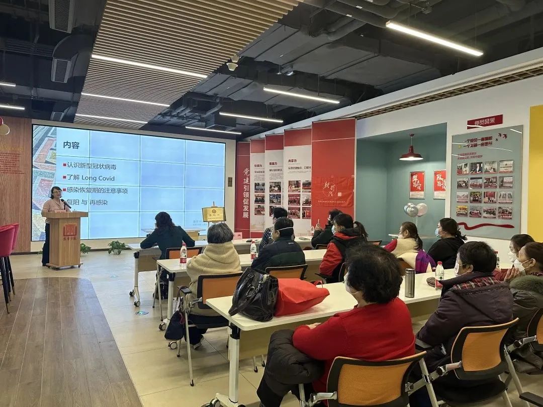 讲座中,居阳主任以扎实的专业功底,用通俗易懂的语言带领大家科学认识了新冠病毒,并讲解了新冠感染恢复期的注意事项和预防“复阳”的措施,使大家收获良多。
