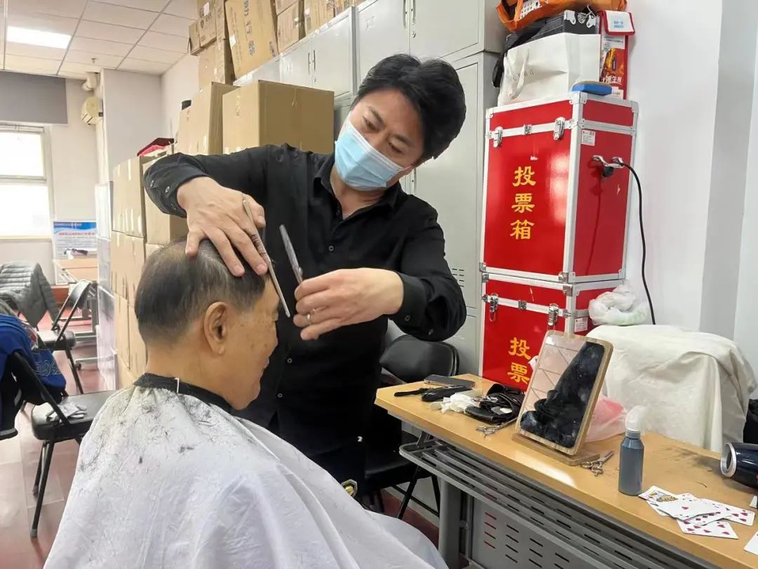 得知便民服务,不少居民一早就结伴前往。社区活动室内,理发师热情接待前来理发的每一位居民,根据其要求设计不同发型。