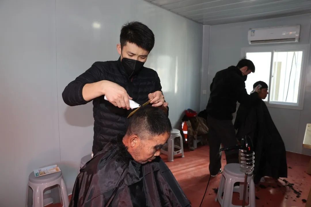 在现场,项目工作人员早就提前预备了五间空置房间,其中两间作为理发室、三间作为等候室,使得有理发需求的建设者不必在春寒中等候,用心程度可见一斑。“公益理发活动不仅有意义,表达了经开区对建设者的关心;而且也很‘实用’,让大家可以不出工地、不扎堆就能享受免费理发服务的便利。”临时党支部相关负责人告诉记者,公益理发活动既是开发建设局送温暖进工地的具体举措,也是临时党支部践行为新市民办实事的生动实践,旨在切实发挥党支部的战斗堡垒作用,实实在在地为建设者们解决困难、送上关心,推动高质量复工复产,确保项目安全文明有序,为冲刺一季度“开门红”发挥积极作用。