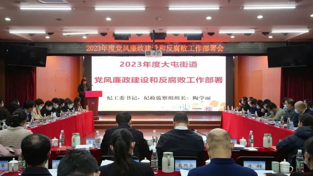 近日,大屯街道召开2023年度党风廉政建设和反腐败工作部署会,街道领导班子成员,六办一队三中心负责人、纪检监察组副组长、各社区党委书记、副书记、纪委书记参加会议。