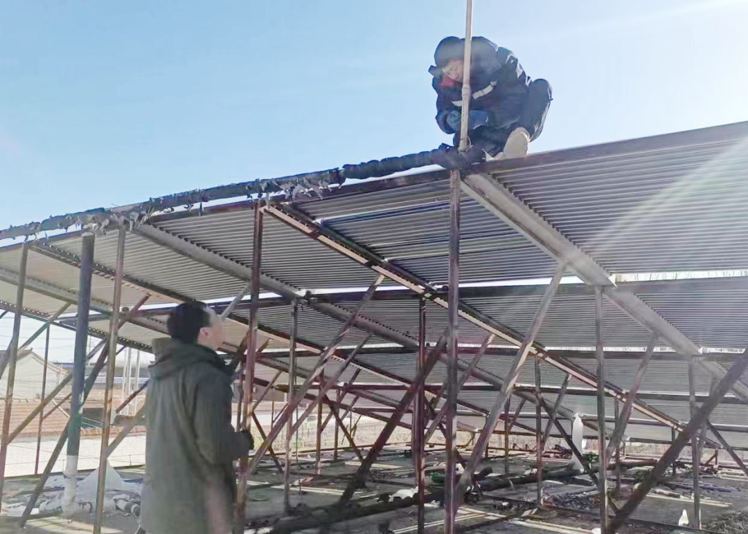 工人检修宗家店村阳光浴室。