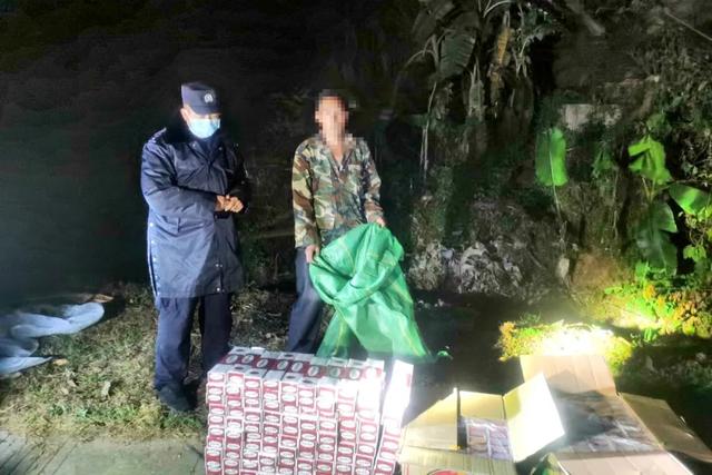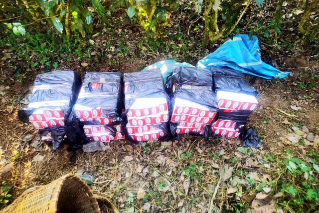 据了解,2月13日上午9点,芒摆茶山警务室民警进行边境视频巡查时发现,在某边境线有人向我方一侧抛投包裹,遂立即前往边境一线核查,当场查获10个装有走私香烟的包裹,共计100条,案值约1.52万元。