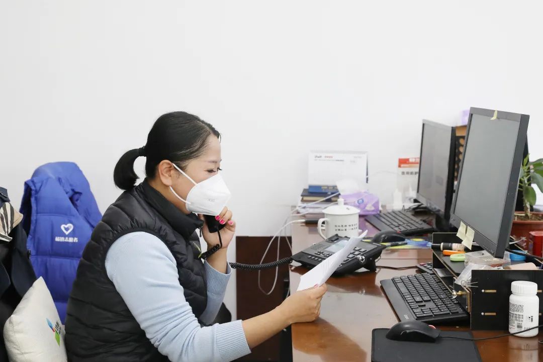 杨镇经济发展办工作人员与企业沟通相关事项。