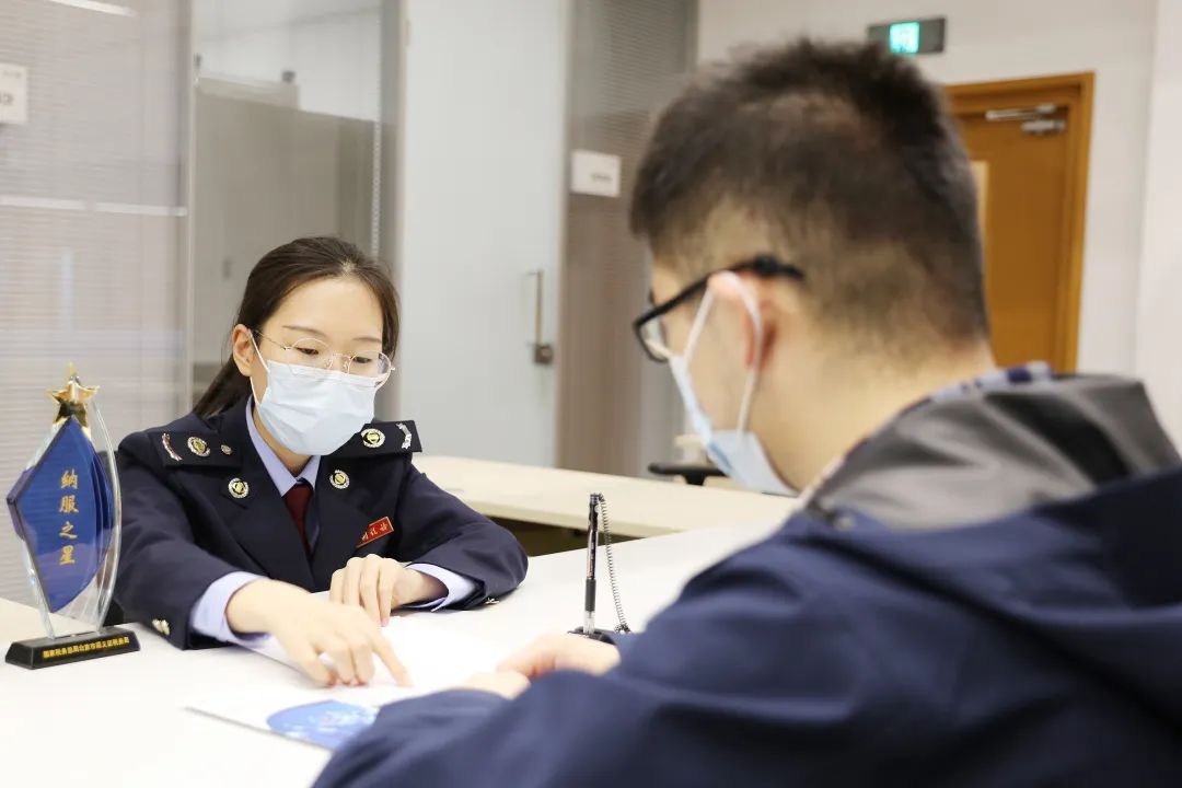 区税务局工作人员为企业办理相关业务。