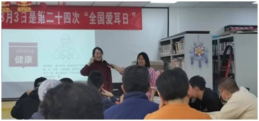 2月23日,丰台区首场“爱耳日”的宣传活动在南苑街道图书馆举行,现场开展了爱耳健康知识讲座、助听器适配、保养,手语学习等活动,共40余人参加。