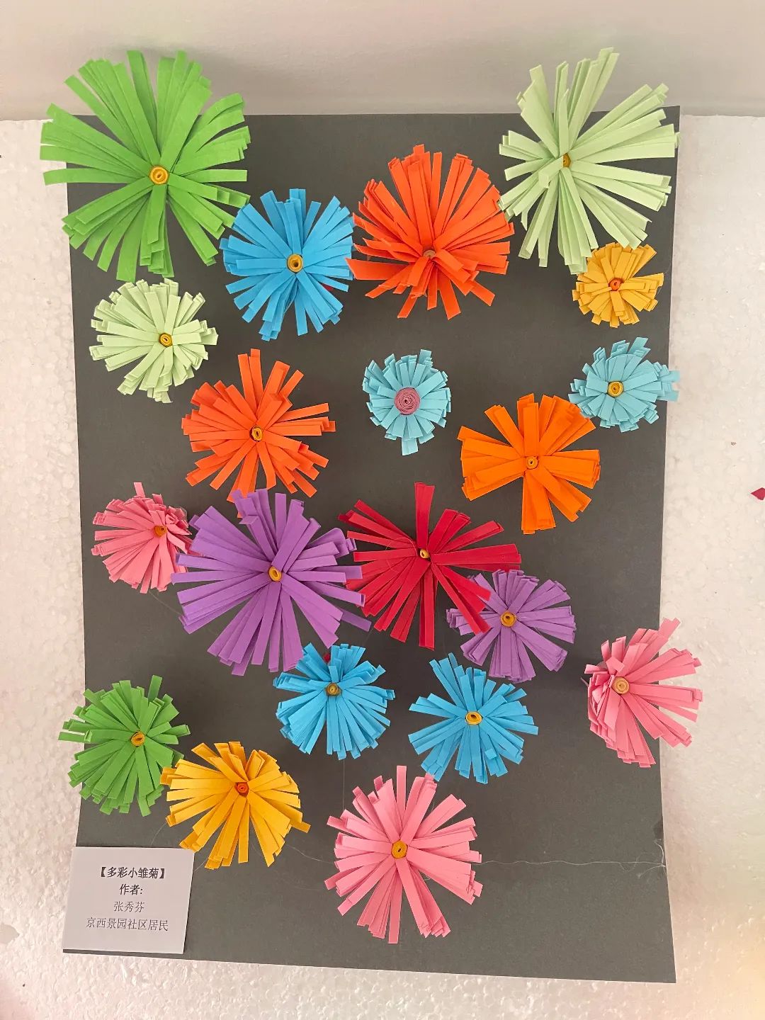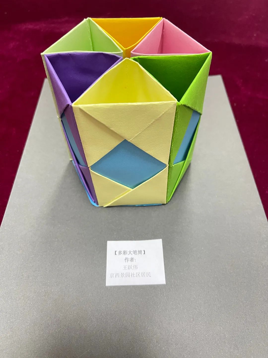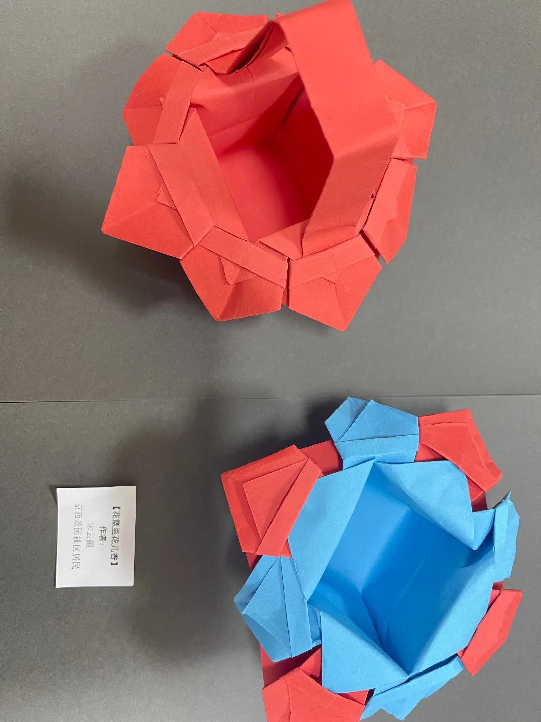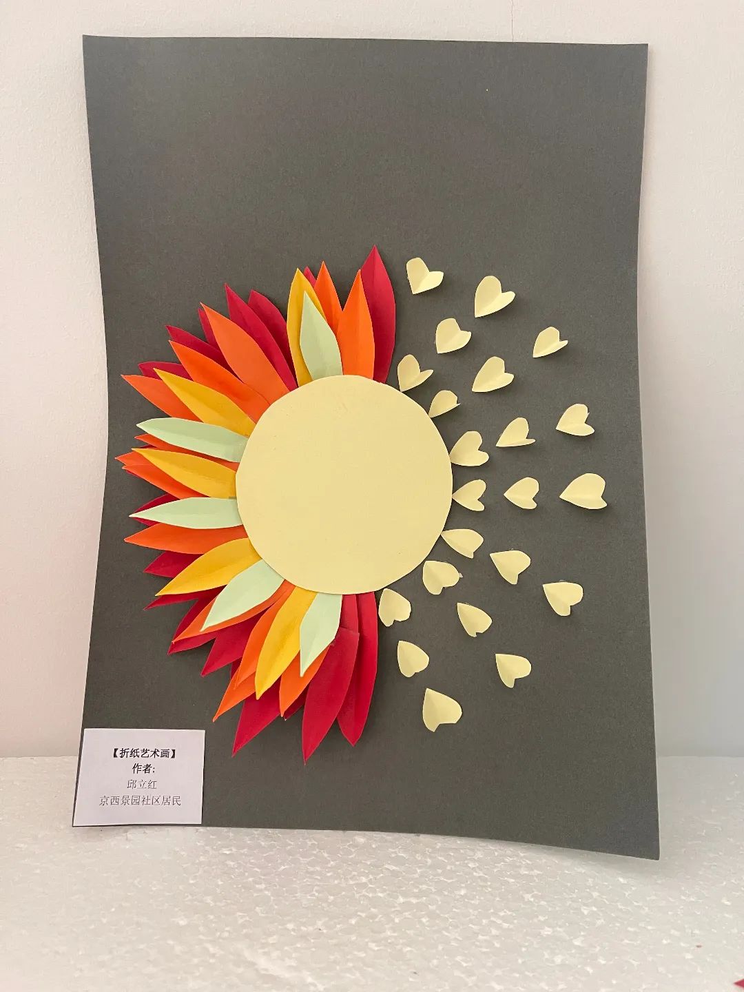 在系列创意折纸手工课程中,居民们不仅通过折纸锻炼手和脑,更将艺术性和实用性结合到一起,创作出多种折纸作品。许多居民表示:“一张普普通通的纸还可以做这么多事情,让我们感到生活中其实处处充满了创意和乐趣”。一些居民更是用折纸的边角料创作出艺术画,展现出大家对美的追求和无限的创意。这次我们将部分居民的折纸作品进行一个线上展示,让更多的人爱上手工,让生活充满更美丽的色彩。