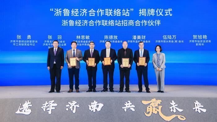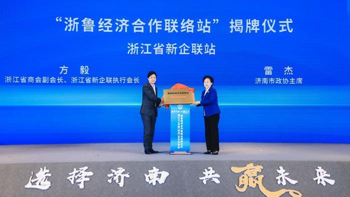 现场,济南市两大“双招双引”平台“浙鲁经济合作联络站”“浙鲁招才引智联络站”正式揭牌。
