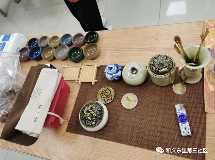 活动当天,老师先与居民展开互动,让居民们表达了自己对香道的理解和平时的接触。然后一一介绍了香道的用途、种类、文化渊源等,以加深居民对香道的印象。老师详细讲解了中国的四大名香——沉香、檀香、麝香和龙涎香,并现场篆香点燃后让居民嗅闻。